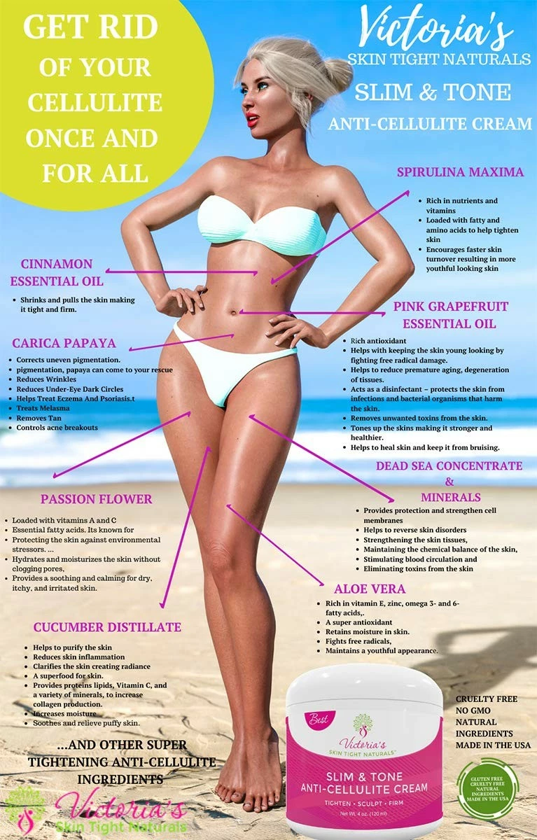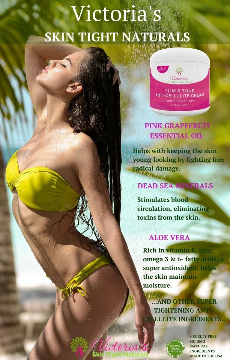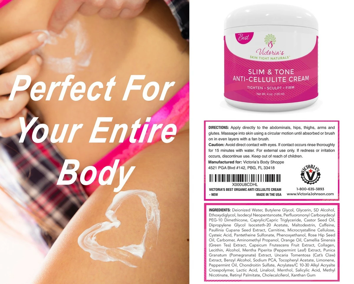 Slim & Tone Anti Cellulite Cream Firming Lotion Botanical Defense Skin Tightening Reduce Sagging Loose Skin Dimples Buttocks Legs Stomach Plus Exclusive Diet and Recipe Guide FREE by Victoria’s Body Shoppe Store